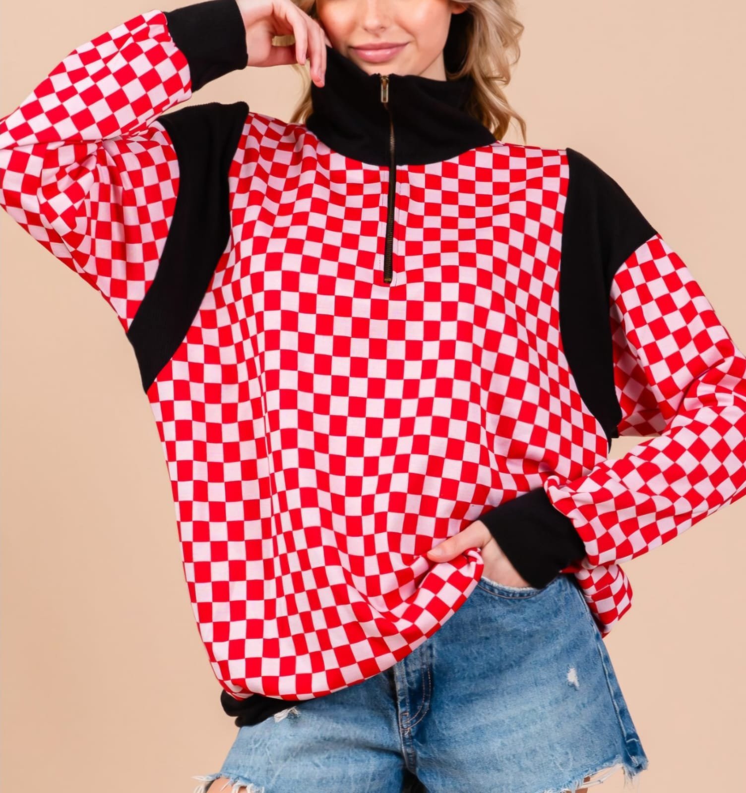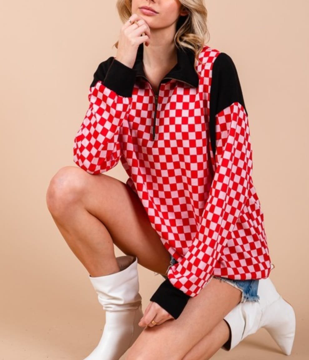 SUDADERA CUADROS ROJO